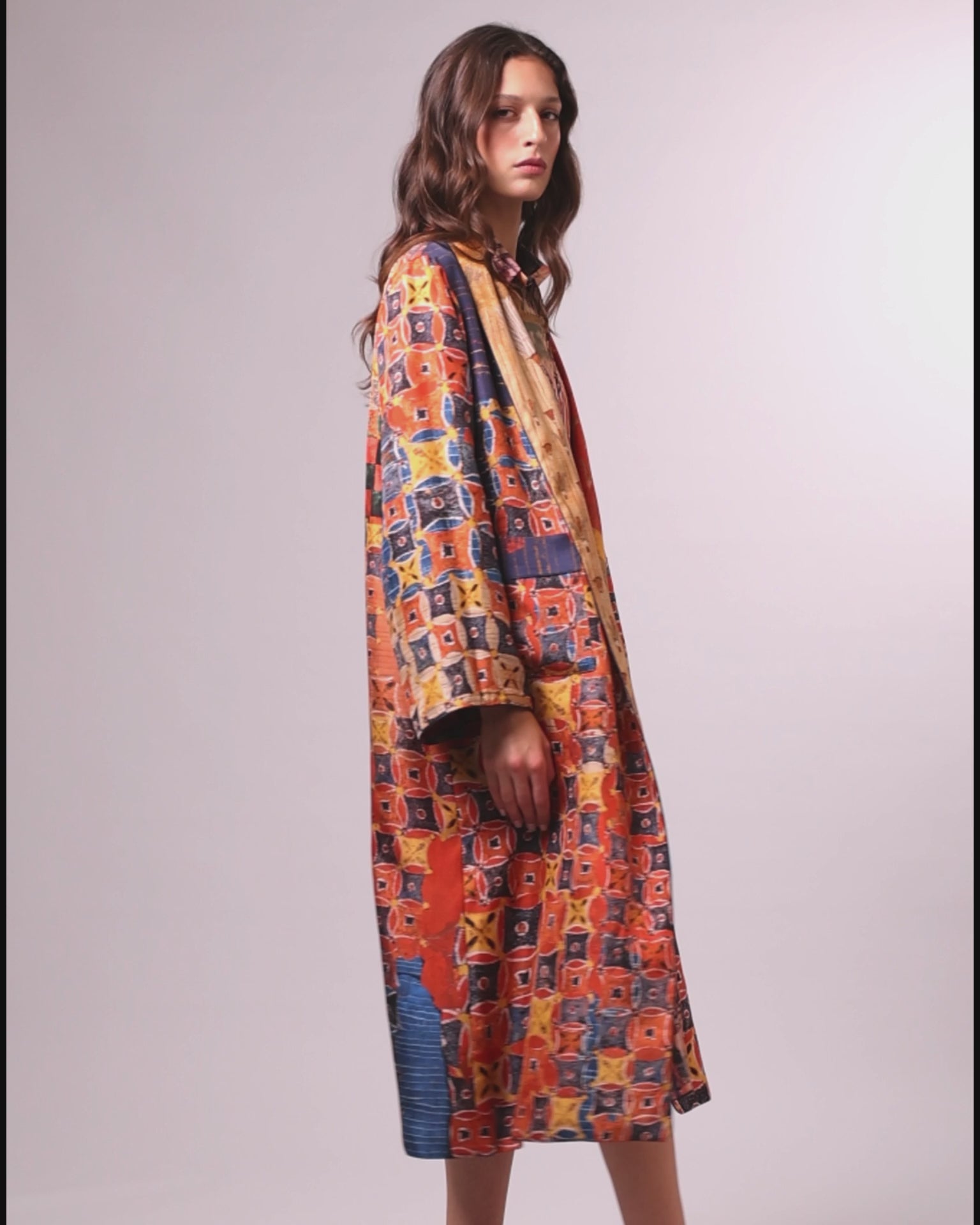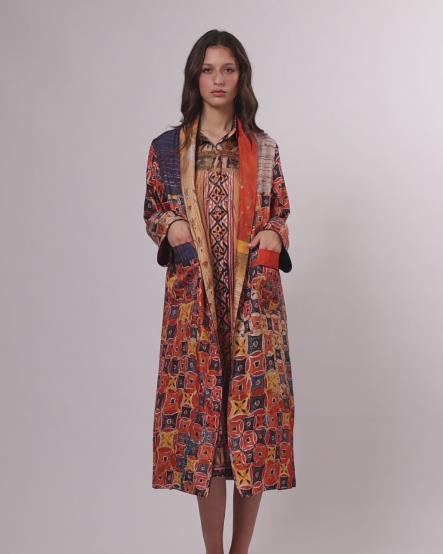 100% Silk reversible Robe. Bringing together Bokja’s artistry and Azza Fahmy’s craftsmanship, this piece is a celebration of Egypt’s timeless heritage.
